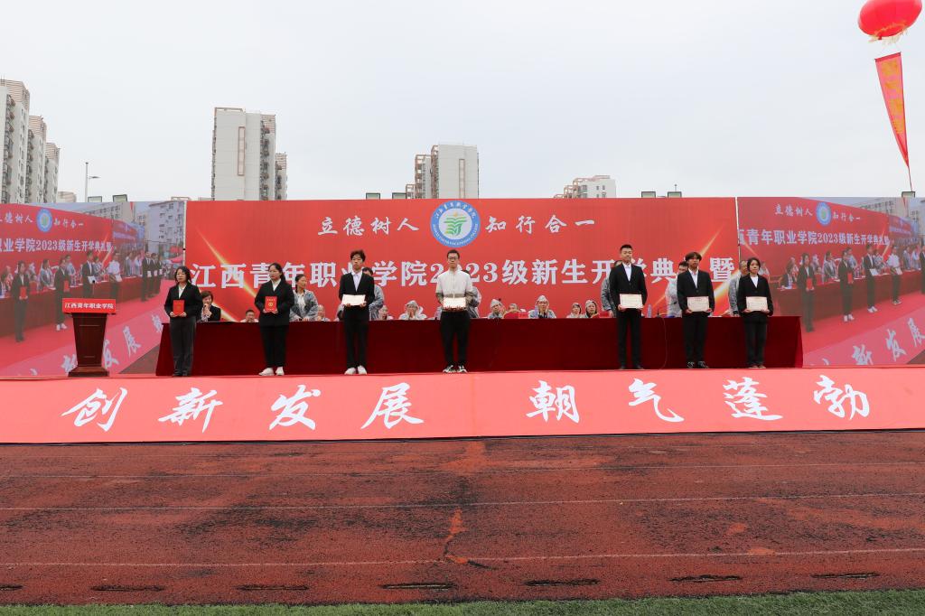 典礼上表彰了2023级新生军训先进集体、优秀军训教官、军训优秀学员,还表彰了2022-2023学年先进班集体、三好学生、优秀学生干部和校级奖学金获得者。
