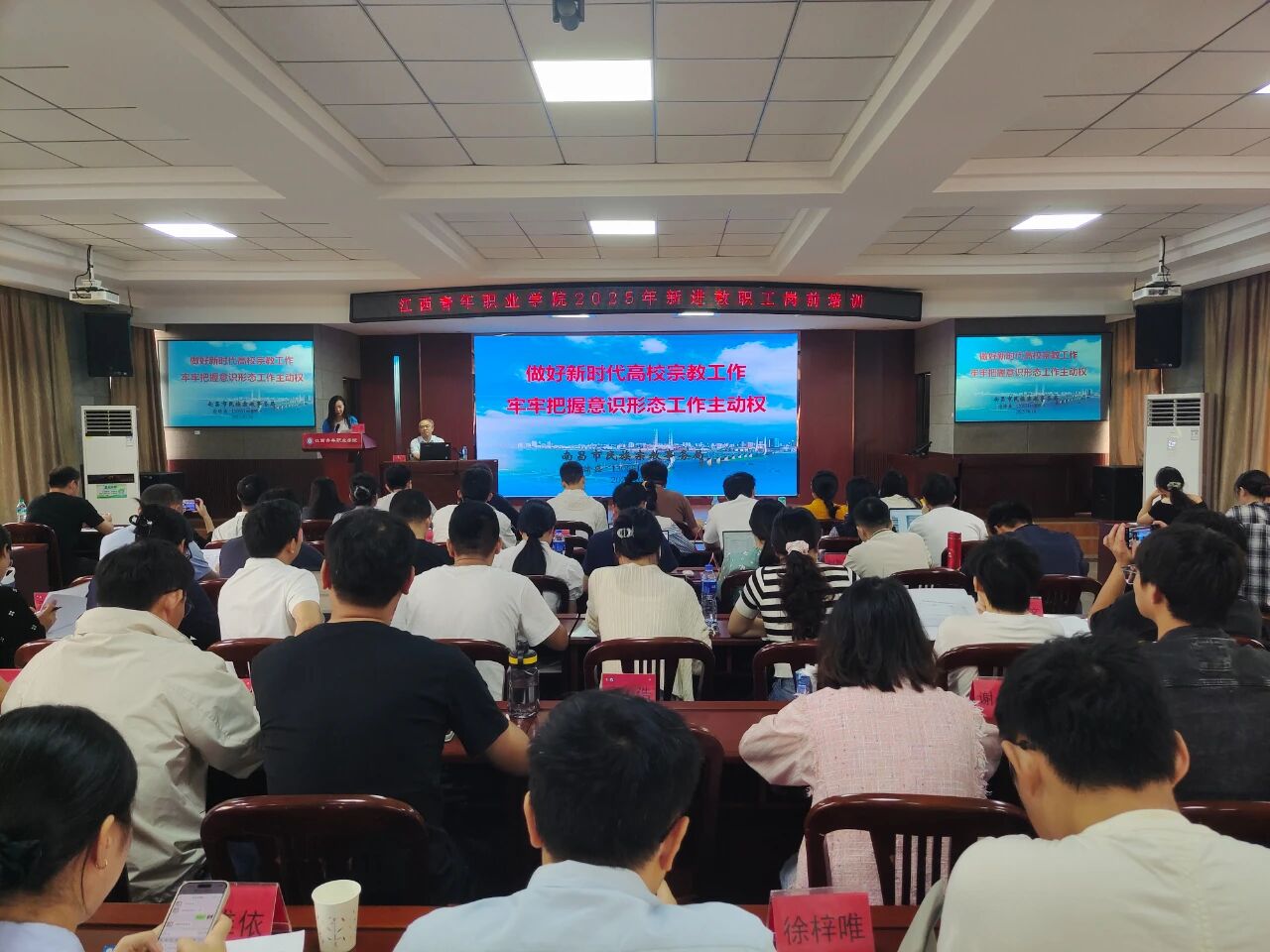 培训特邀南昌市民族宗教事务局四级调研员涂绪盛作“做好新时代高校宗教工作,牢牢把握意识形态工作主动权”专题讲座。他结合国家政策法规与高校工作实际,通过政策解读、案例分析等方式,深入阐释了新时代高校宗教工作的重要意义与实践路径,为新进教职工筑牢意识形态安全防线提供了专业指导。