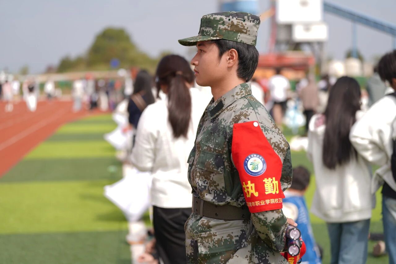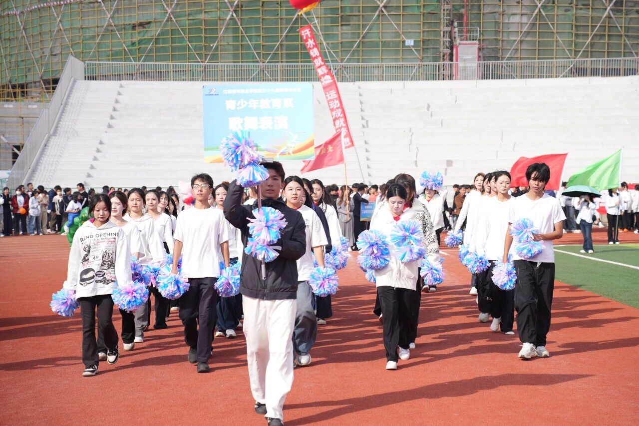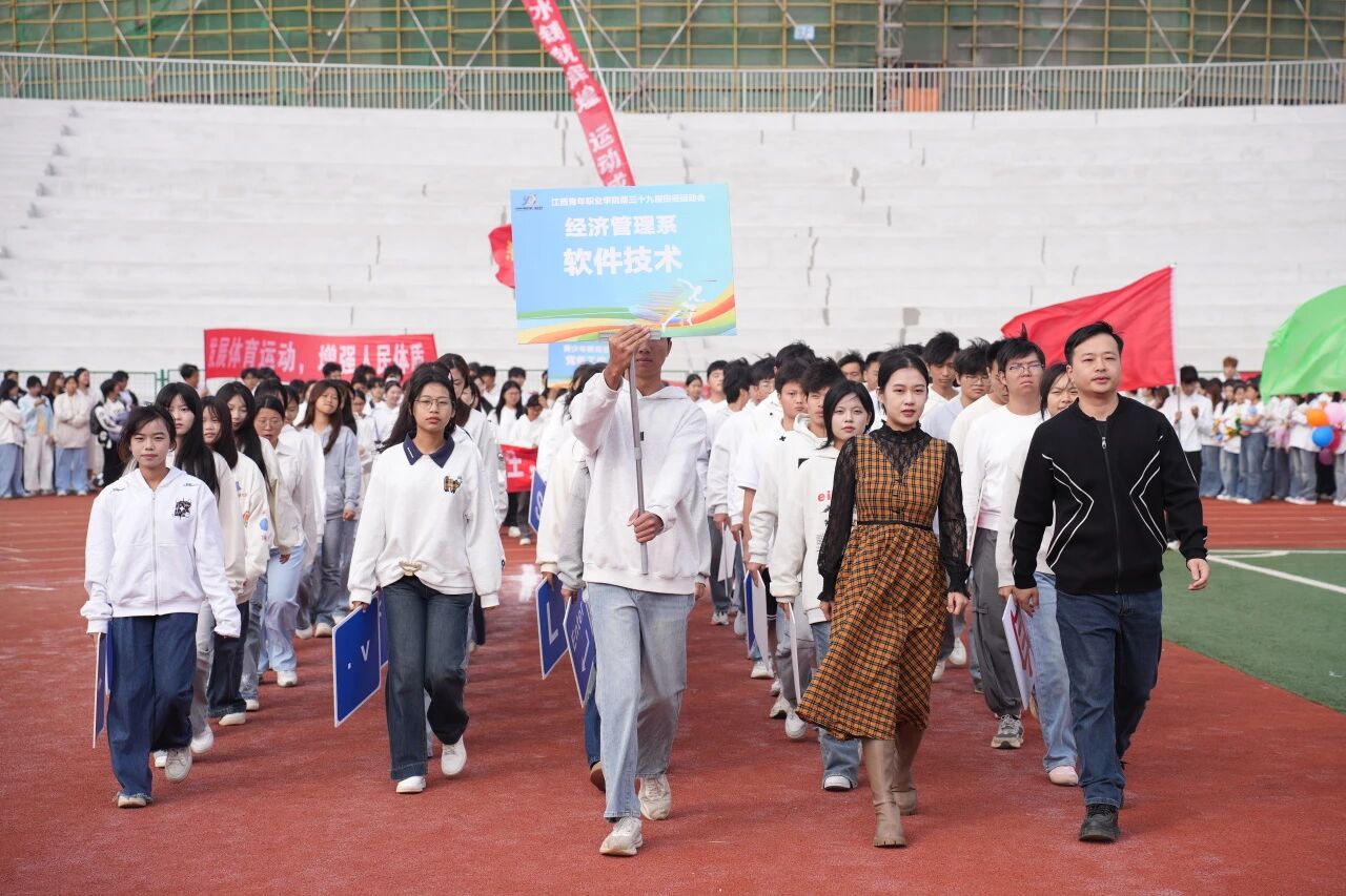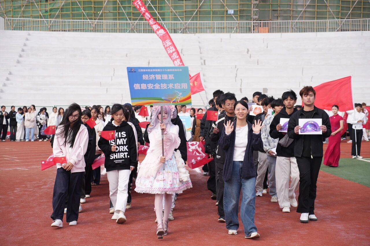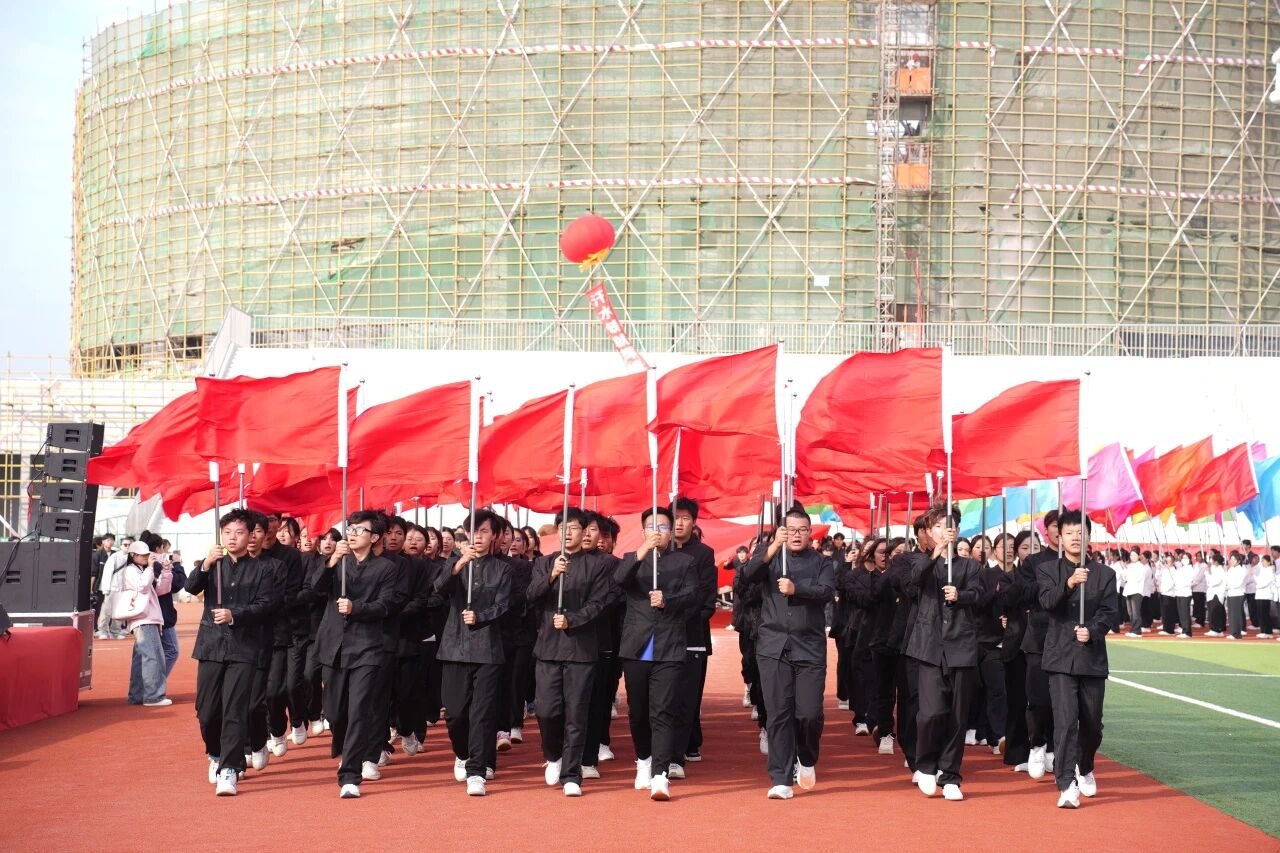 “青春・集结”篇章以庄重仪式拉开序幕。国旗队、会旗队迈着铿锵步伐率先入场,各系运动员方阵与裁判员队伍依次跟进——不少方阵手持契合专业特色的道具,变换创意队形传递青春巧思。“青春无畏,逐梦扬威”“团结拼搏,超越自我”此起彼伏的嘹亮口号响彻运动场,青院学子积极向上、团结奋进的精神风貌跃然眼前。