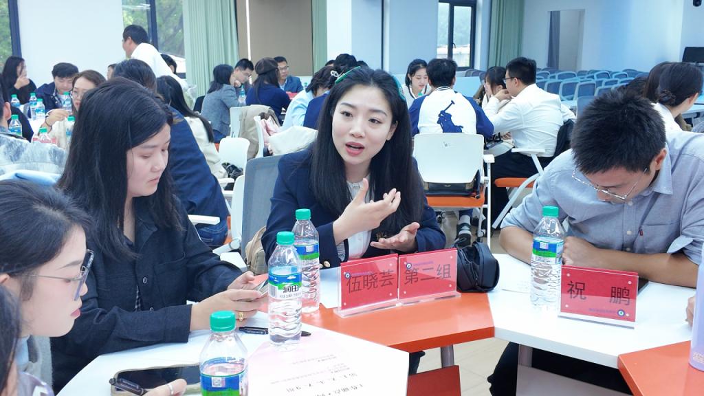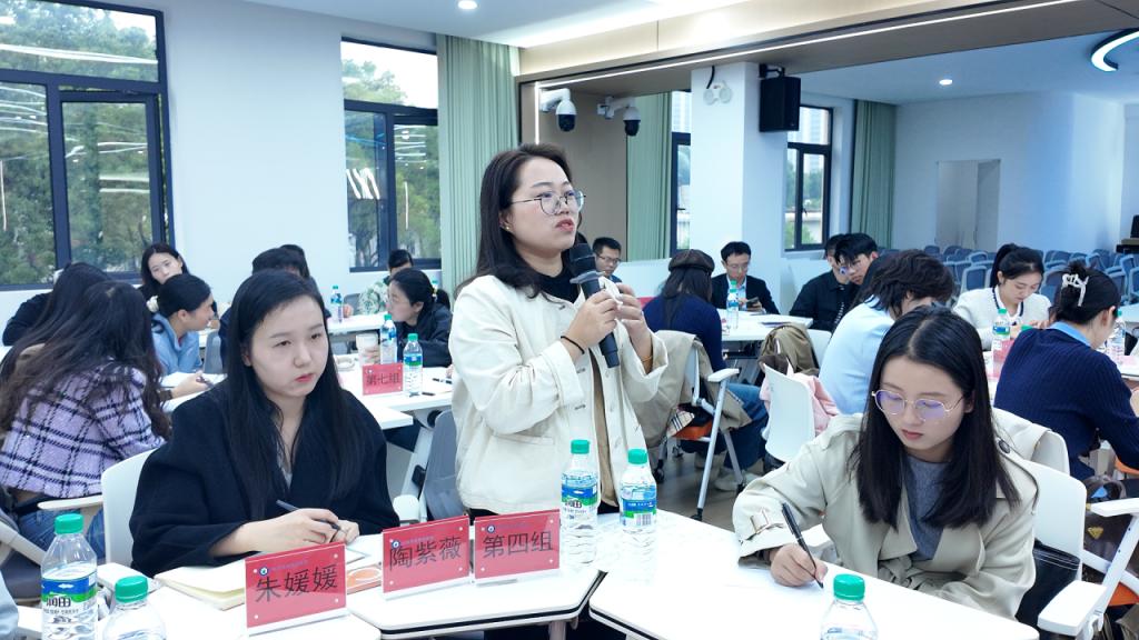 《工作痛点・问题共创》环节中,参会辅导员分成10个小组,围绕四大议题展开深度研讨。第1、2、3、7、9组提出思政教育与家校合作方案;第4、5、6、8、10组分享职业发展进阶路径及赛事准备经验。