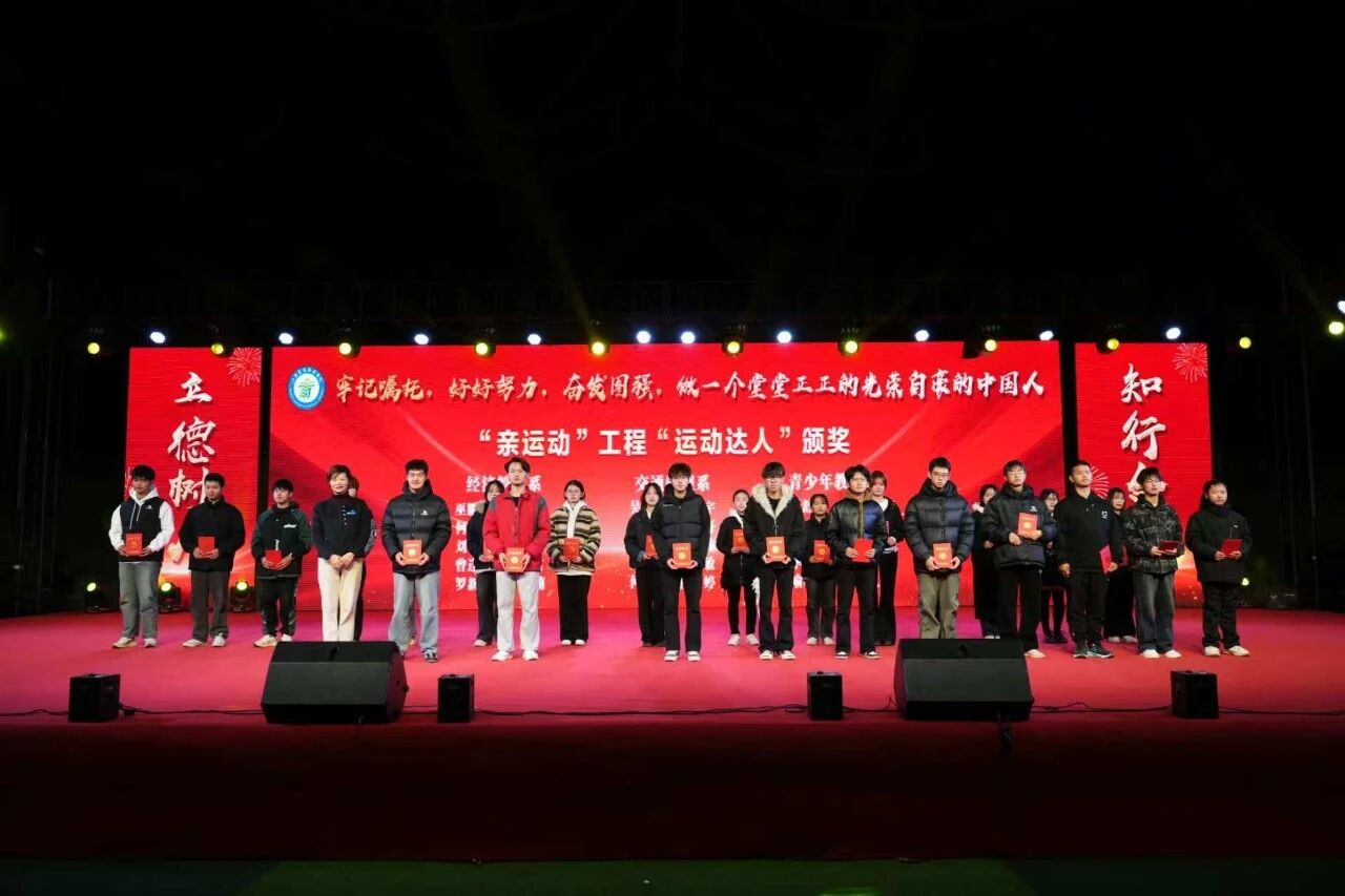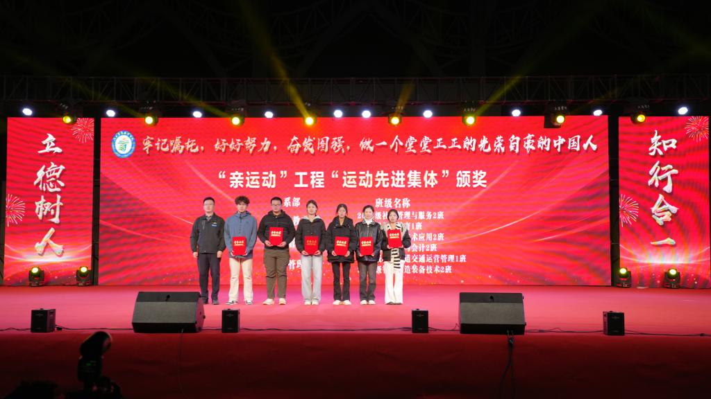 为弘扬体育精神,营造“青春活力、阳光向上”的校园运动生态,晚会特别设置了“运动达人”与“运动先进集体”颁奖环节。在全场师生的掌声中,学校领导宣读获奖名单并为获奖个人及集体颁发荣誉证书。这份荣誉不仅是对运动健儿拼搏精神的肯定,更激励着全体新生以昂扬姿态投入到校园生活中,在运动中锤炼意志、收获成长。