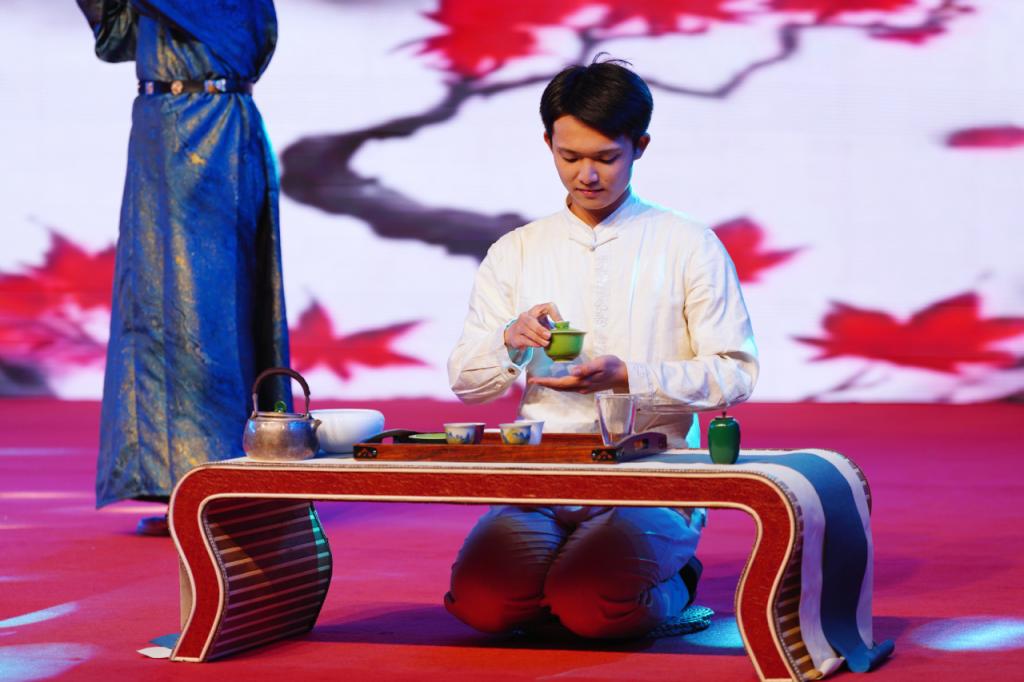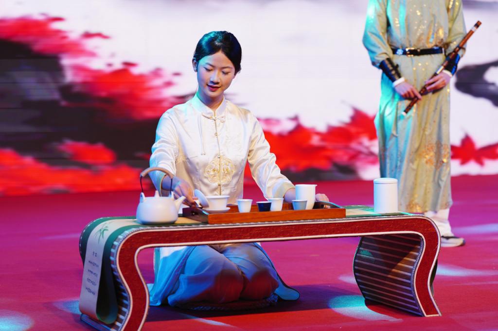 学院艺术团器乐队带来的特色节目《竹韵三叠》,将传统器乐与茶文化巧妙结合,曾在2025年江西省职业院校技能大赛高职组茶艺竞赛中斩获省级一等奖的张祺同学与三等奖的张甜同学参与表演,茶香袅袅与乐声悠扬相得益彰,让现场观众沉浸式感受传统文化的深厚底蕴。