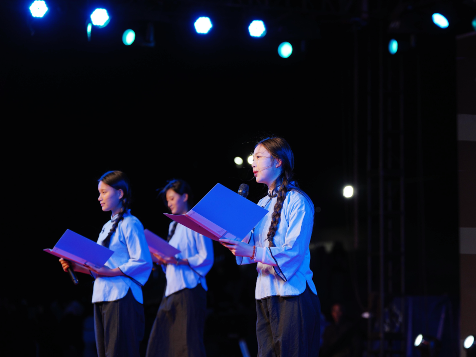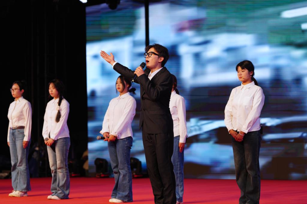 朗诵《闪耀的青春》则以铿锵语调,展现了青年一代承载期望、逐梦前行的壮志豪情。