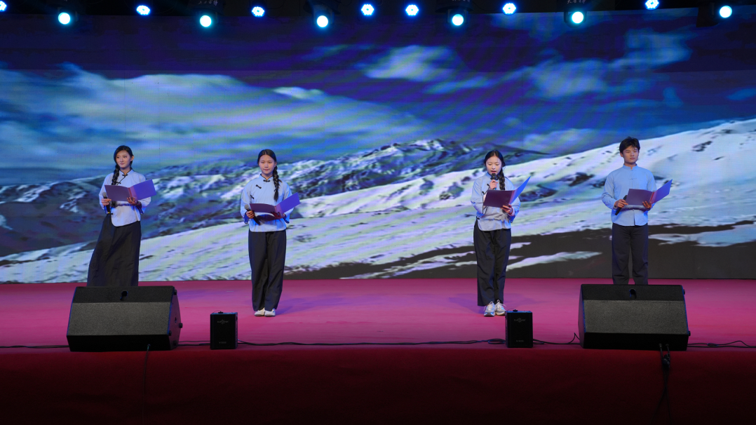 南昌职业大学宋鑫艺、李倩丹等同学带来的朗诵《天路》,以铿锵有力的声韵诉说着雪域高原的奋斗传奇,传递出震撼人心的精神力量。