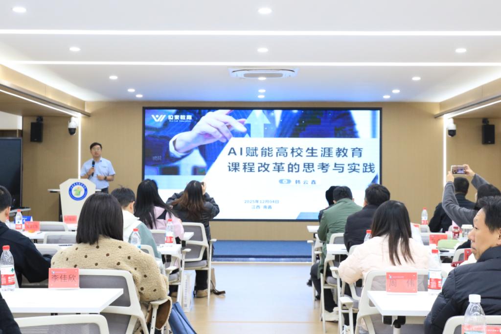 12月4日下午,中国高等教育培训中心讲师、位来生涯研究院副院长韩云鑫以《AI赋能高校生涯教育课程改革的思考与实践》为题开展讲座。在数字化转型加速的背景下,韩云鑫聚焦AI技术与生涯教育的深度融合,从课程改革的痛点出发,系统阐述了AI在学生需求分析、个性化方案生成、教学效果评估等环节的应用场景。他结合在“线上+线下、人工+智能”融合模式中的实践经验,分享了如何利用AI工具优化课程设计、丰富教学资源、提升教学互动性,为高校生涯教育课程注入科技动能,为参训教师打开了课程改革的新视野。