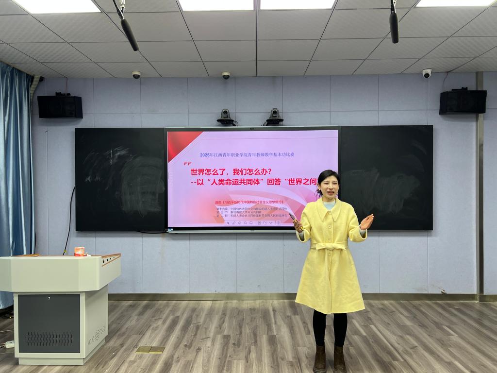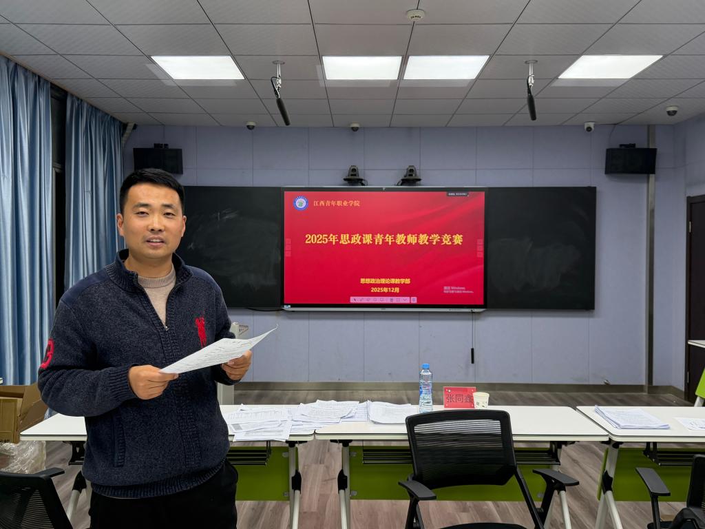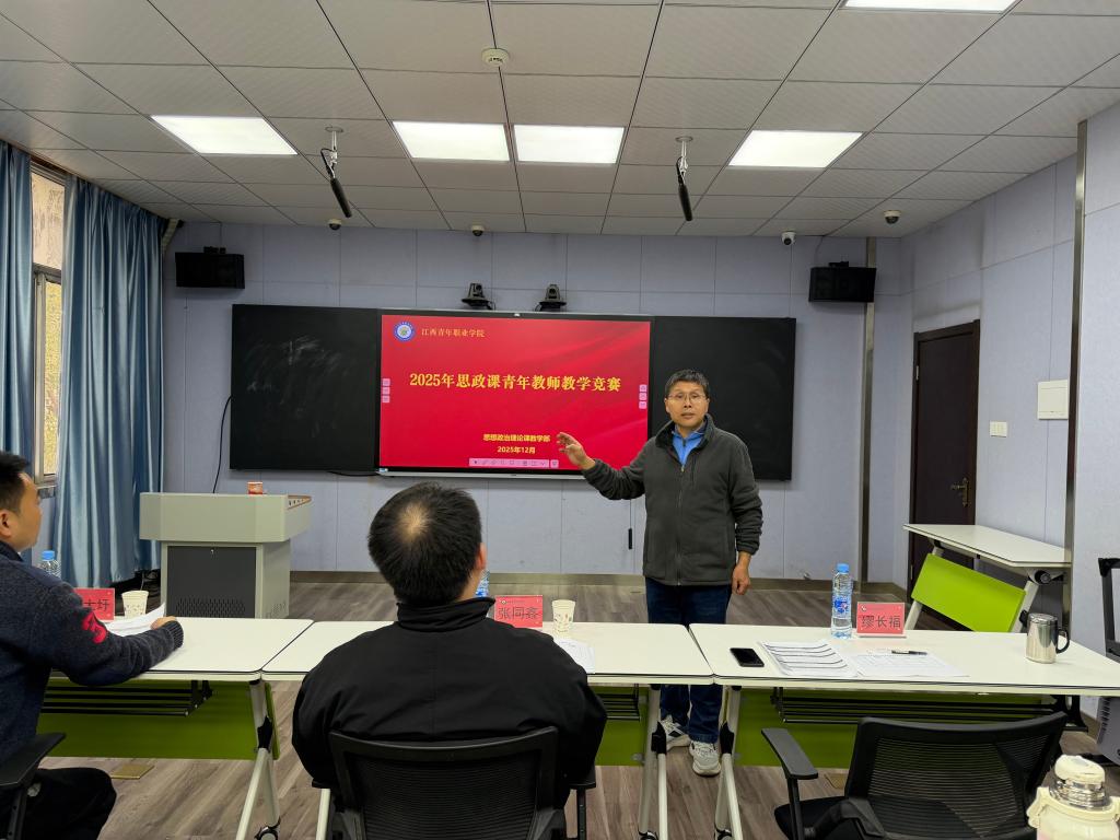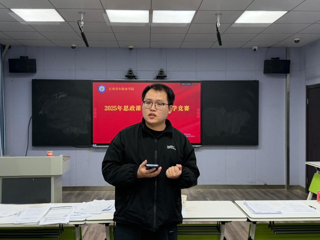 为进一步加强思政课教师队伍建设,锤炼思政课青年教师教学本领,近日,学校举行2025年思政课青年教师教学竞赛。江西艺术职业学院思政部主任王大圩、江西职业技术大学马克思主义学院思政课专任教师、2025年粤桂琼赣滇五省(区)高校思政课青年教师教学基本功比赛本科组一等奖及2025年江西省高校思政课和红色文化课程青年教师教学基本功比赛本科组一等奖获得者张同鑫,我校思政部负责人缪长福共同担任本次比赛评委。