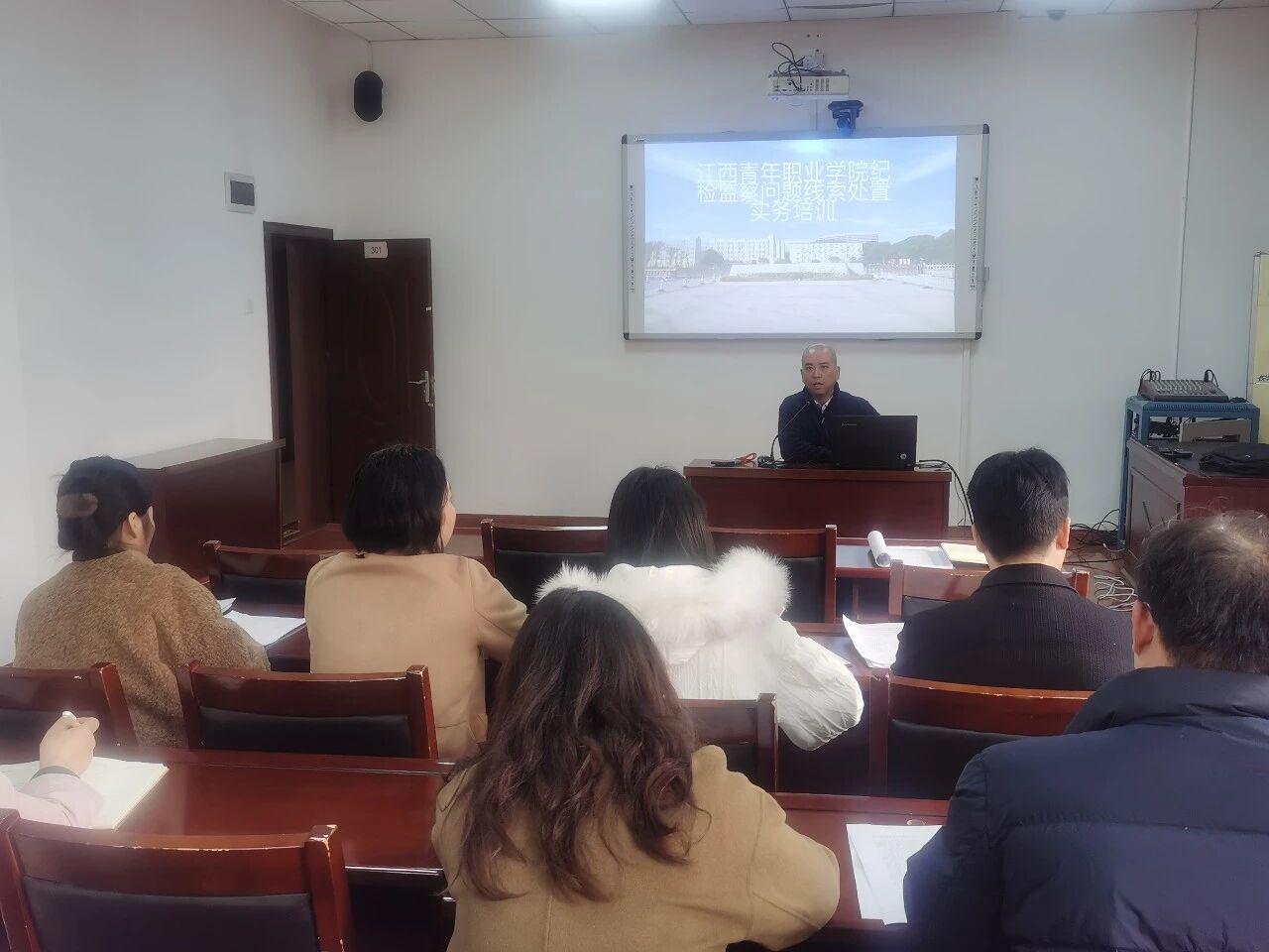 为深入学习贯彻习近平新时代中国特色社会主义思想和党的二十大及历次全会精神,全面落实二十届中央纪委四次全会部署要求,持续推进纪检监察工作规范化、法治化、正规化建设,12月30日,学校在行政楼301会议室召开2025年第六次纪委(扩大)学习会暨纪检干部培训会,党委委员、纪委书记李锋参加会议并讲话。纪委委员、各党总支纪检委员及专职纪检干部参加会议。
