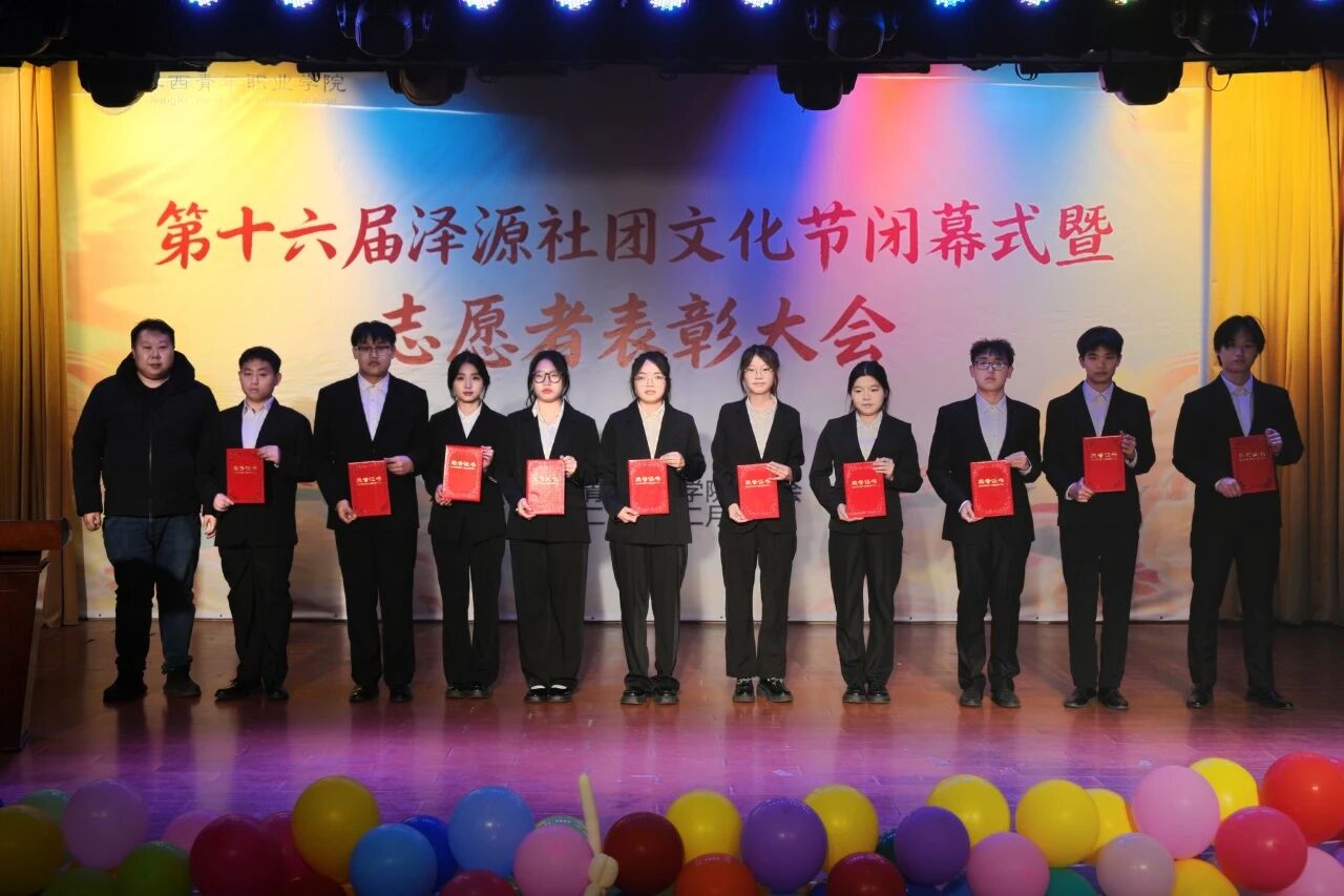 为发挥先进典型示范引领作用,丰富校园文化内涵,厚植师生志愿情怀,12月30日,学校第十六届泽源社团文化节闭幕式暨志愿者表彰大会在艺术演播厅举行。学校党委副书记邵婷婷,学生工作处、团委相关负责人,各系团总支书记、优秀志愿者代表及师生代表共计300余人齐聚一堂,共同见证这场集荣誉表彰与文化展示于一体的校园盛会。