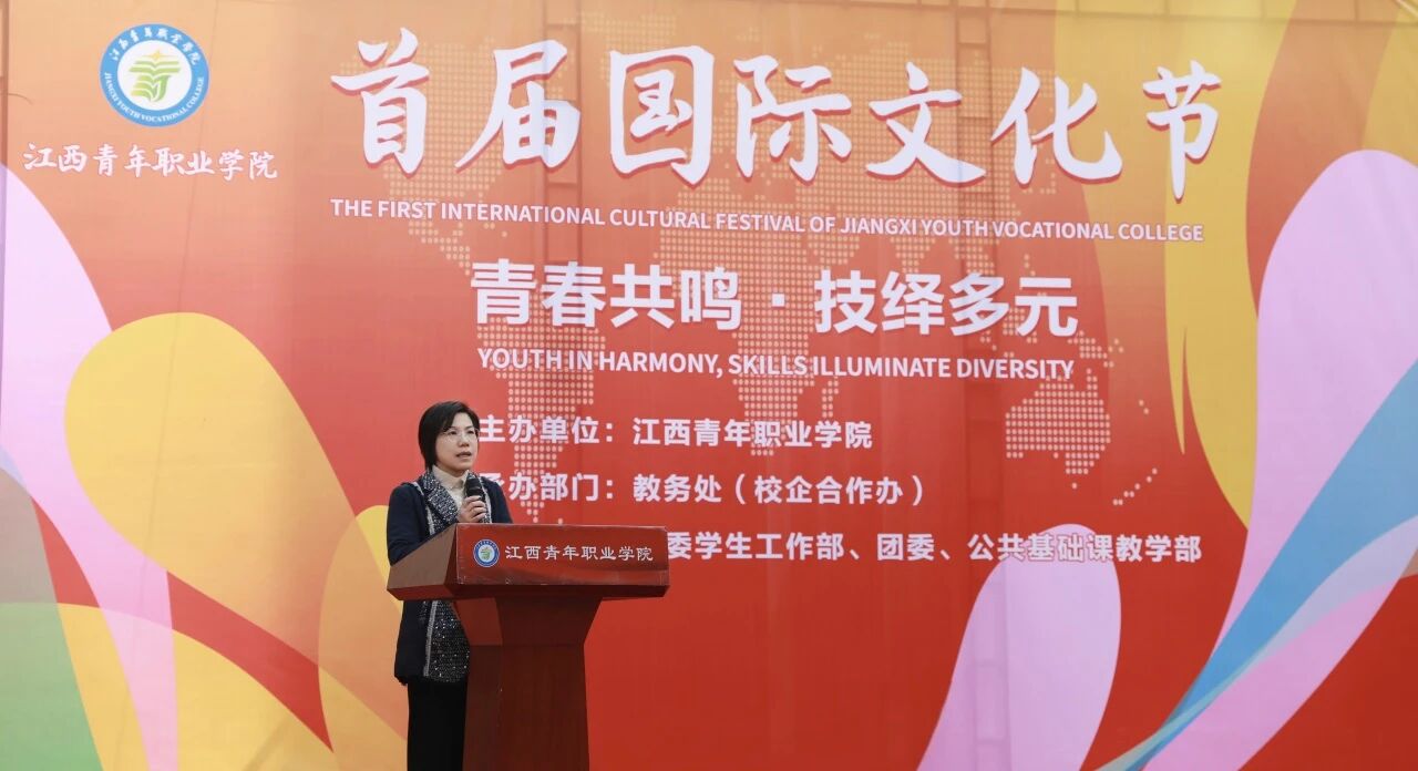 刘英在开幕式上寄语青年:“本届文化节不仅是一次文化展示,更是一场青春对话与技艺交响。”她鼓励同学们主动走近,积极交流,在与世界同龄人的互动中激发灵感,提升跨文化沟通与协作的“软实力”与“硬技能”,并希望大家沉浸其中,品尝异国风味,体验别样游戏,学一句亲切问候,交一位四海知音。