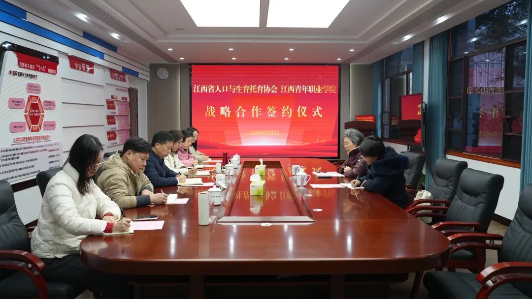 2月9日上午,江西省人口与生育托育协会与我校战略合作签约仪式顺利举行。江西省人口与生育托育协会会长屈艳、秘书长叶琳琳,学校党委书记罗来松,党委委员、教务处处长戴彩云及相关部门负责人参加仪式。
