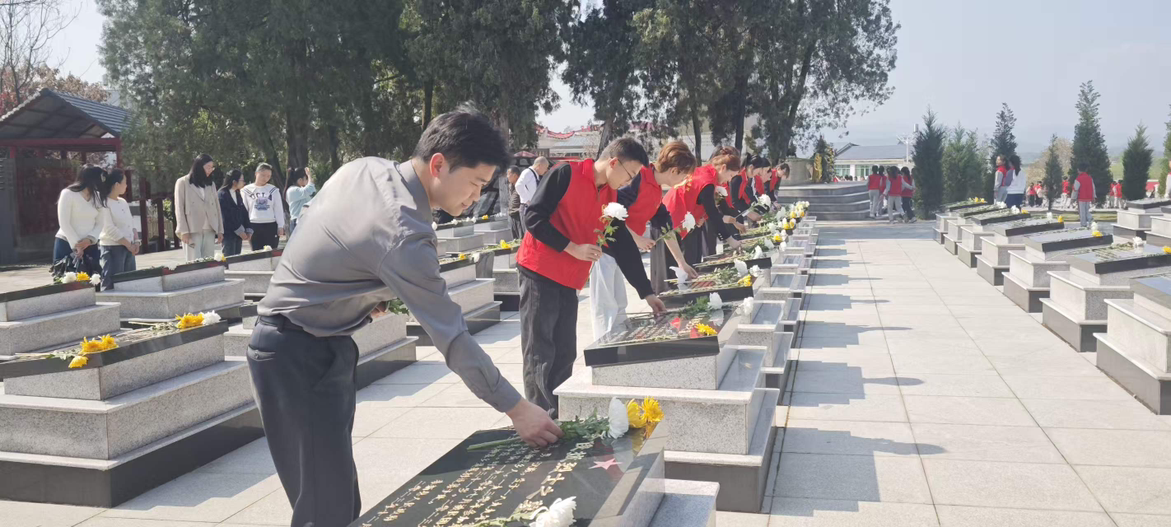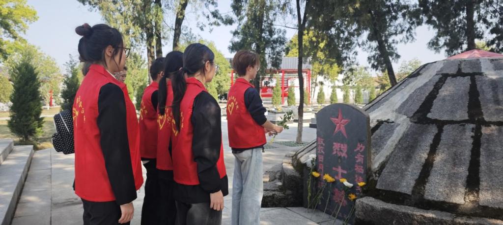 发言完毕,师生们手持白菊,依次向烈士墓碑敬献鲜花、深深鞠躬,感念先烈用热血铸就忠诚,用生命守护家国。随后,大家拿起工具,分工擦拭墓碑、清扫陵园,以实际行动守护英烈安息之地,表达对革命先辈的深切尊崇与缅怀。