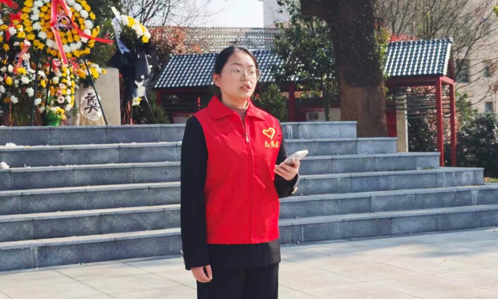 默哀毕,学生代表梁馨发言。她表示,先烈们以生命换来山河无恙、国泰民安。作为新时代青年,必将铭记历史、传承精神,将缅怀化作奋进力量,勤学笃行、勇担使命,以青春担当不负时代、不负韶华。
