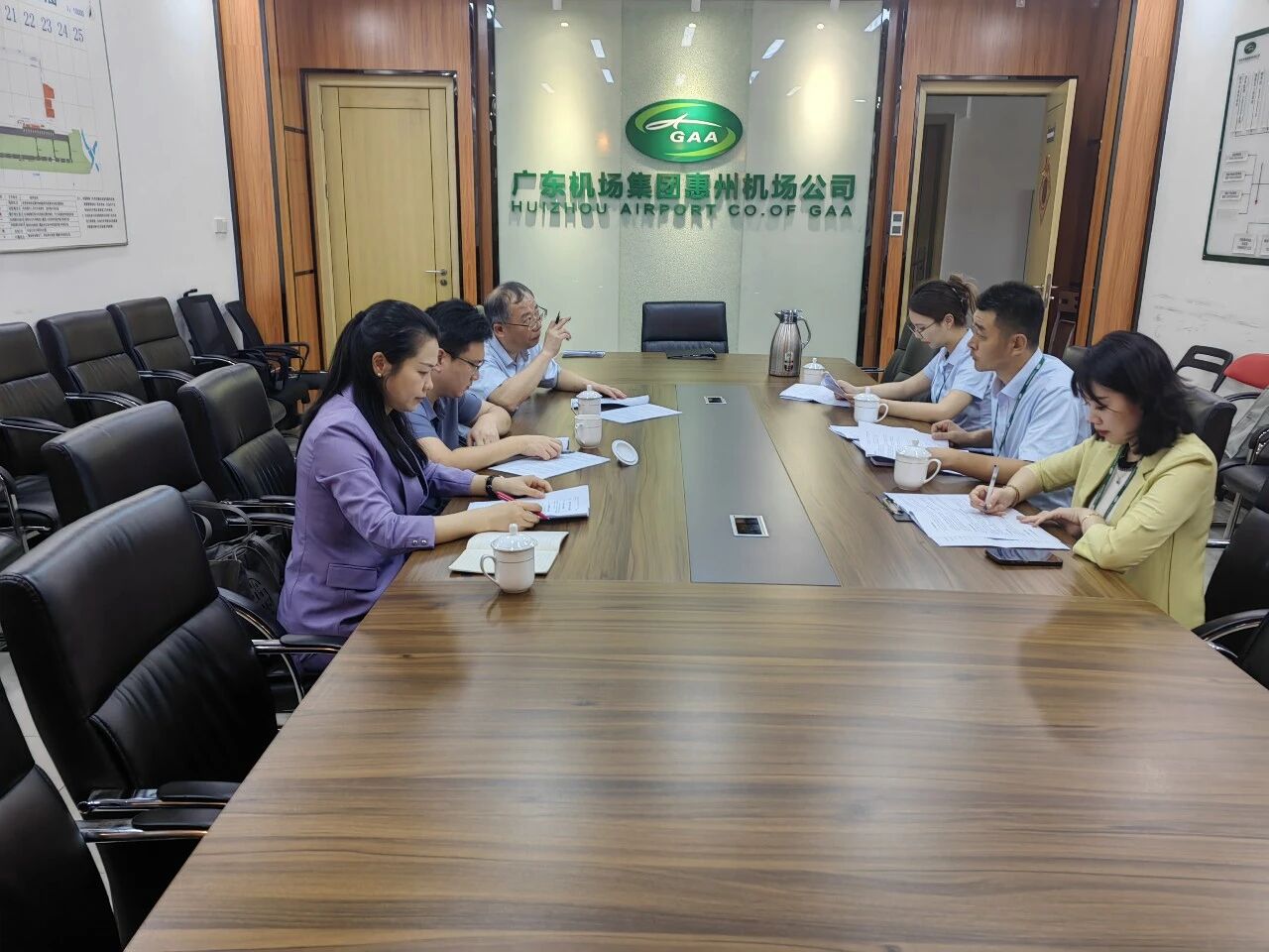 在惠州平潭机场,校领导慰问了实习的青院学子,细致询问学生实习工作与生活近况。随后与广东万事通航空地勤服务有限公司就订单培养方案进行了探讨,并提出了意见建议。