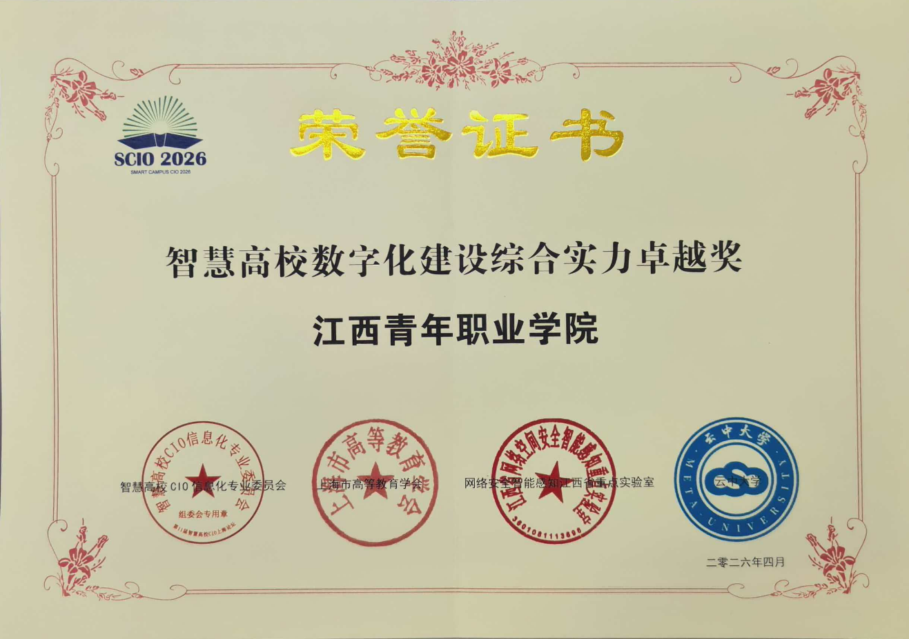 近日,以“AI引领,智启高等教育新征程”为主题的第十一届智慧高校CIO上海论坛在上海举办。本次论坛由智慧高校CIO组委会、上海市高等教育学会、云中大学、网络安全智能感知江西省重点实验室联合主办。我校荣获“智慧高校数字建设综合实力卓越奖”。