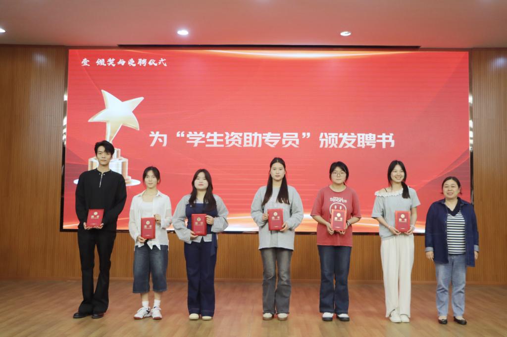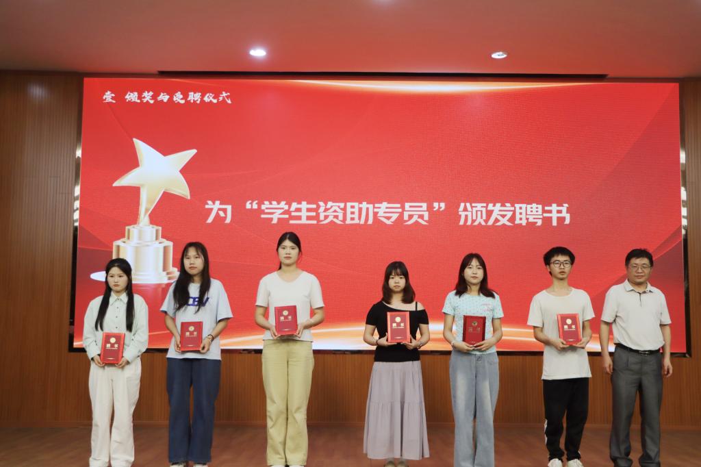 活动现场,刘英为国家励志奖学金获得者颁发荣誉证书。各二级学院党总支书记、副书记为受聘的学生资助专员颁发聘书。