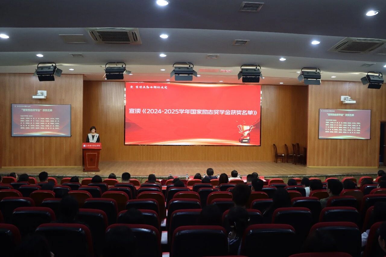会上,刘小莲宣读了《2024—2025学年国家励志奖学金获奖名单》与《江西青年职业学院关于聘任学生资助专员的决定》。