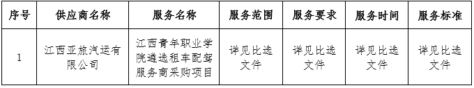 二、项目名称:江西青年职业学院遴选租车配驾服务商采购项目
