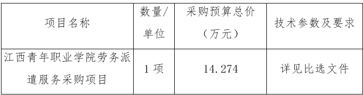 项目名称:江西青年职业学院劳务派遣服务采购项目