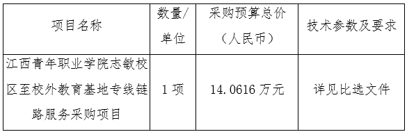 项目名称:江西青年职业学院志敏校区至校外教育基地专线链路服务采购项目
