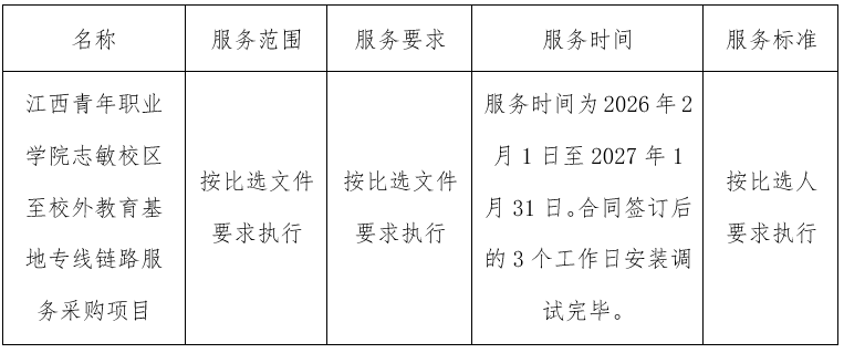 江西青年职业学院志敏校区至校外教育基地专线链路服务采购项目