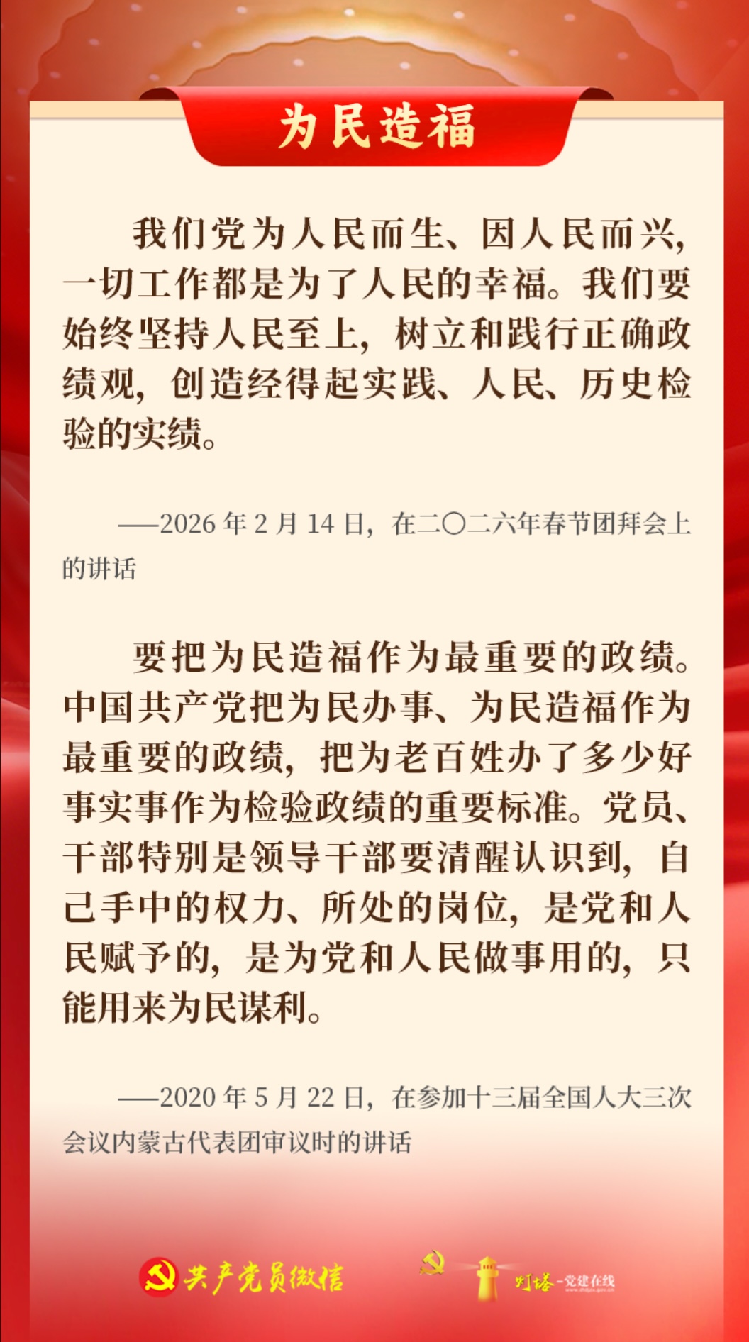 中共中央办公厅印发《关于在全党开展树立和践行正确政绩观学习教育的通知》,明确把“立党为公、为民造福、科学决策、真抓实干”这16个字,作为学习教育的总要求。“十五五”开局之年,一起学习总书记相关重要论述,将16字总要求内化于心、外化于行,树立和践行正确政绩观,投身强国建设、民族复兴的关键一程。
